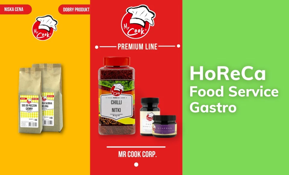 Mr Cook as a producer of spices for the catering industry, offers two product lines, Niska Cena and Premium Line.
