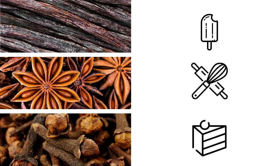 It is hard to imagine pastries and ice cream without vanilla and spices. In addition, customers in this industry often buy sesame, dried lemon and orange peels. Also, chilli as an addition to chocolate desserts has become a spice sought after in this industry.