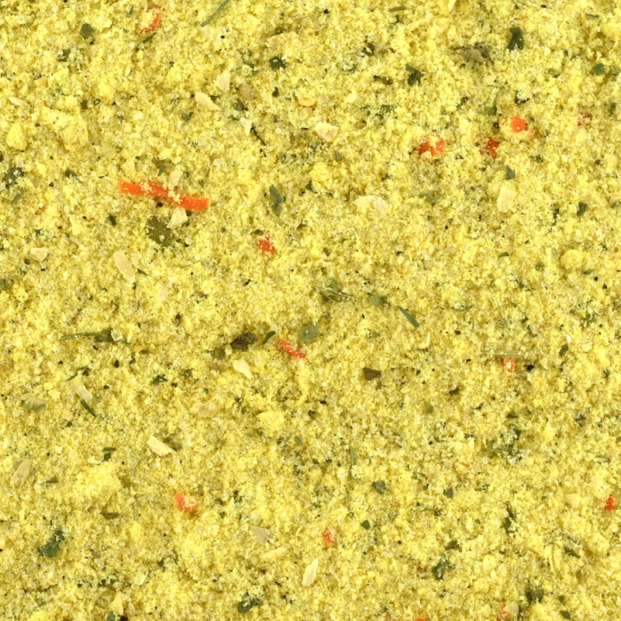 sól, maltodekstryna, wzmacniacze smaku: glutaminian sodu, 5'-rybonukleotydy disodowe; cukier, hydrolizat białka roślinnego (sojowego), cebula, tłuszcz drobiowy (2,00%), kurkuma, marchew, pietruszka, pieprz pasternak, regulator kwasowości: kwas cytrynowy, aromat