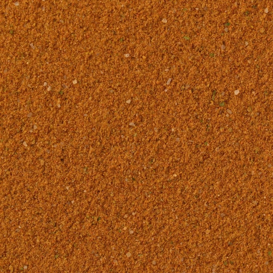 sól, papryka słodka, wzmacniacz smaku: glutaminian monosodowy; kozieradka, kurkuma, czosnek, skoncentrowany sok z buraka (60% maltodekstryna, 40% skoncentrowany sok z buraka); skrobia pszenna, cebula, imbir, majeranek, nać pietruszki, chilli, kolendra, ziele angielskie.