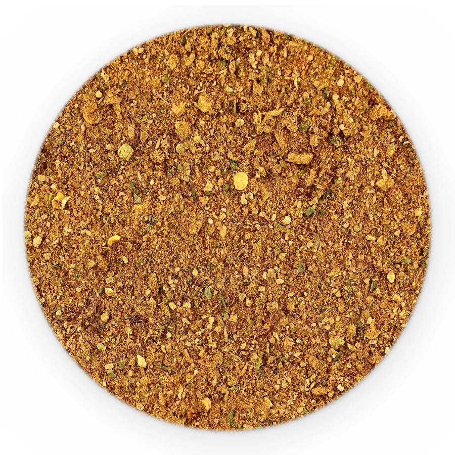 sól, papryka, cukier trzcinowy brązowy, kmin rzymski, chilli Jalapeno czerwone, cytryna skórka, cebula, czosnek, kolendra, pieprz Cayenne, pomarańcza skórka, oregano, kolendra liść.