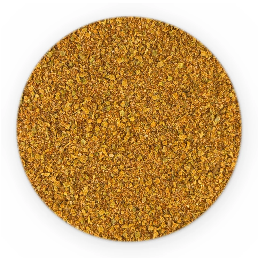sól, papryka słodka, majeranek, cukier, cebula, gorczyca biała, czosnek, pieprz czarny, rozmaryn, ziele angielskie, kolendra, gałka muszkatołowa, jałowiec, papryka ostra, goździki.
