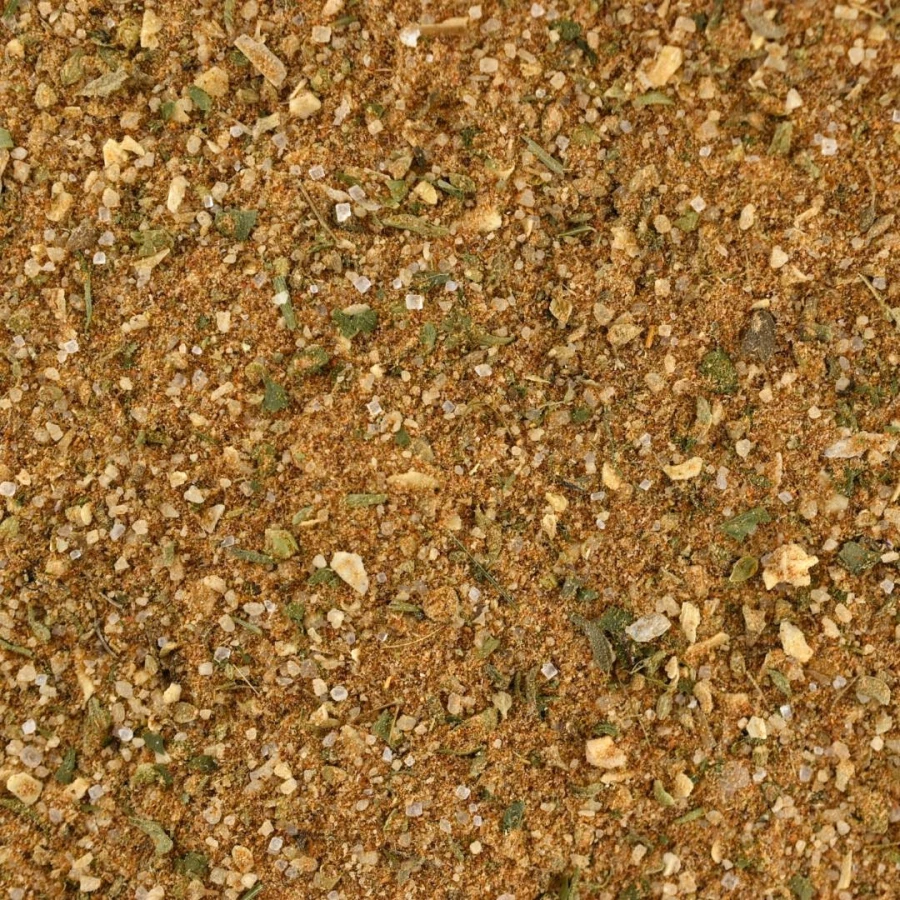 sól, papryka słodka, czosnek, cukier, cebula, oregano, kmin rzymski, kolendra, rozmaryn , gałka muszkatołowa, cynamon, tymianek, pieprz cayenne, pietruszka
