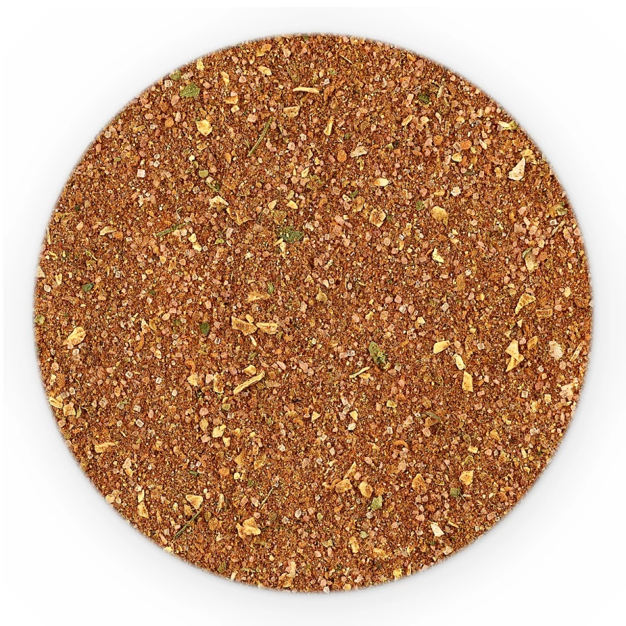 sól, papryka słodka, cukier, cebula, czosnek granulowany, skrobia pszenna, kurkuma, kolendra, papryka ostra, imbir, suszone pomidory, skoncentrowany sok z buraka (60% maltodekstryna, 40% skoncentrowany sok z buraka); kmin rzymski, pieprz czarny, majeranek, oregano, nać pietruszki.